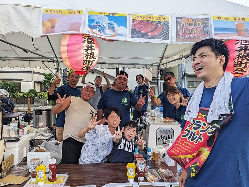 新しいアクティビティとして酒井根町会様の夏まつりに柏さくらライオンズクラブとして屋台出店をさせていただきました。フランクフルトにタコス、生ビール、各種サワー、ラムネを販売させていただきました。若いスタッフを中心に大盛り上がり。お客様も長蛇の列を作っていただき、素敵な笑顔の交流をさせていただきました。地元の皆様との良き交流にもつながりました。