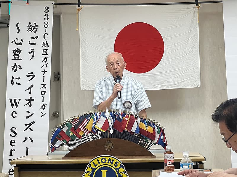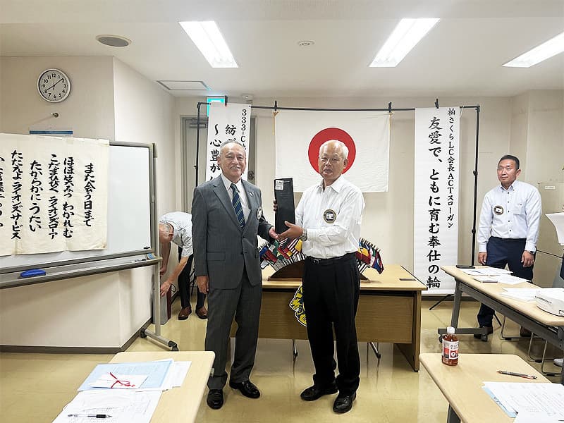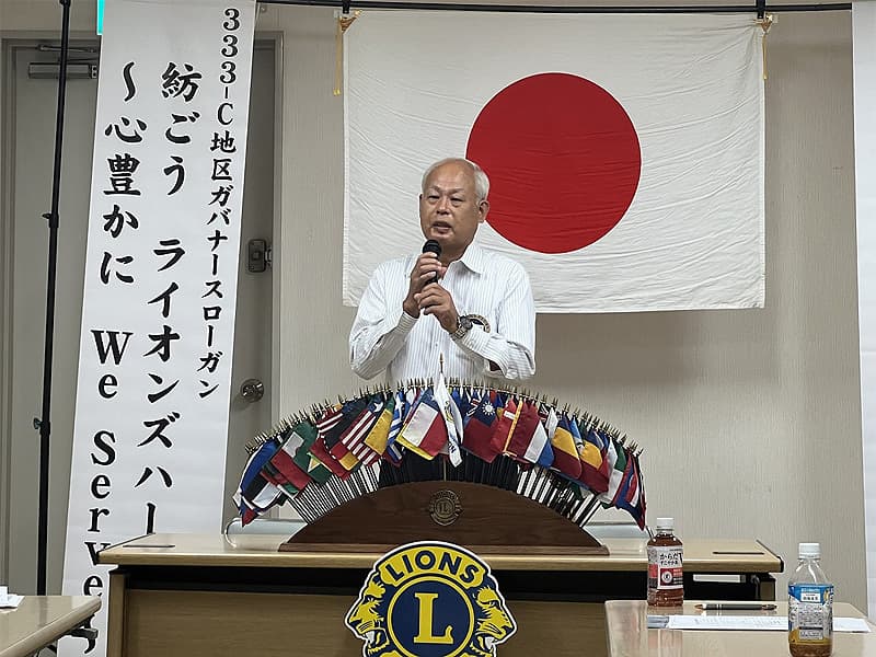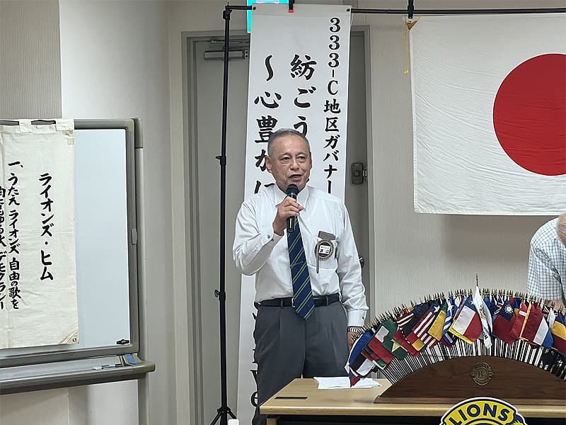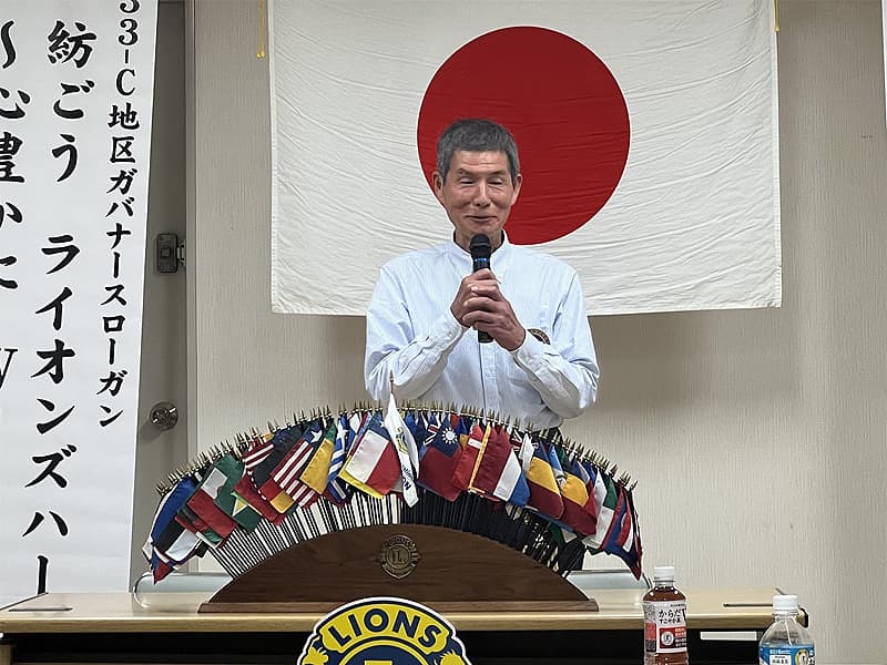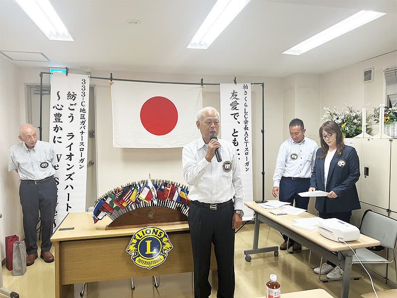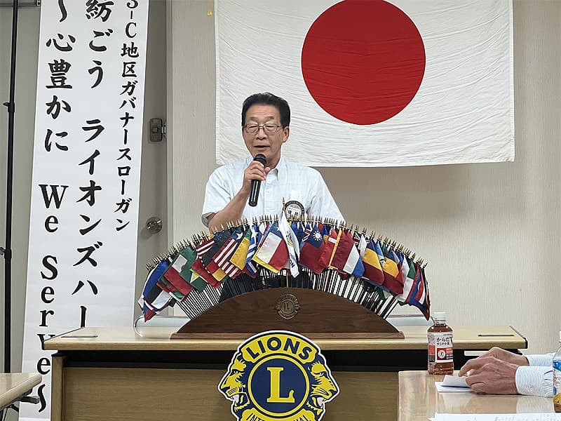 会長スローガンは「友愛で、ともに育む奉仕の輪」で、引き続き会員増強と地域に根差した奉仕活動に取り組む決意を表明されました。