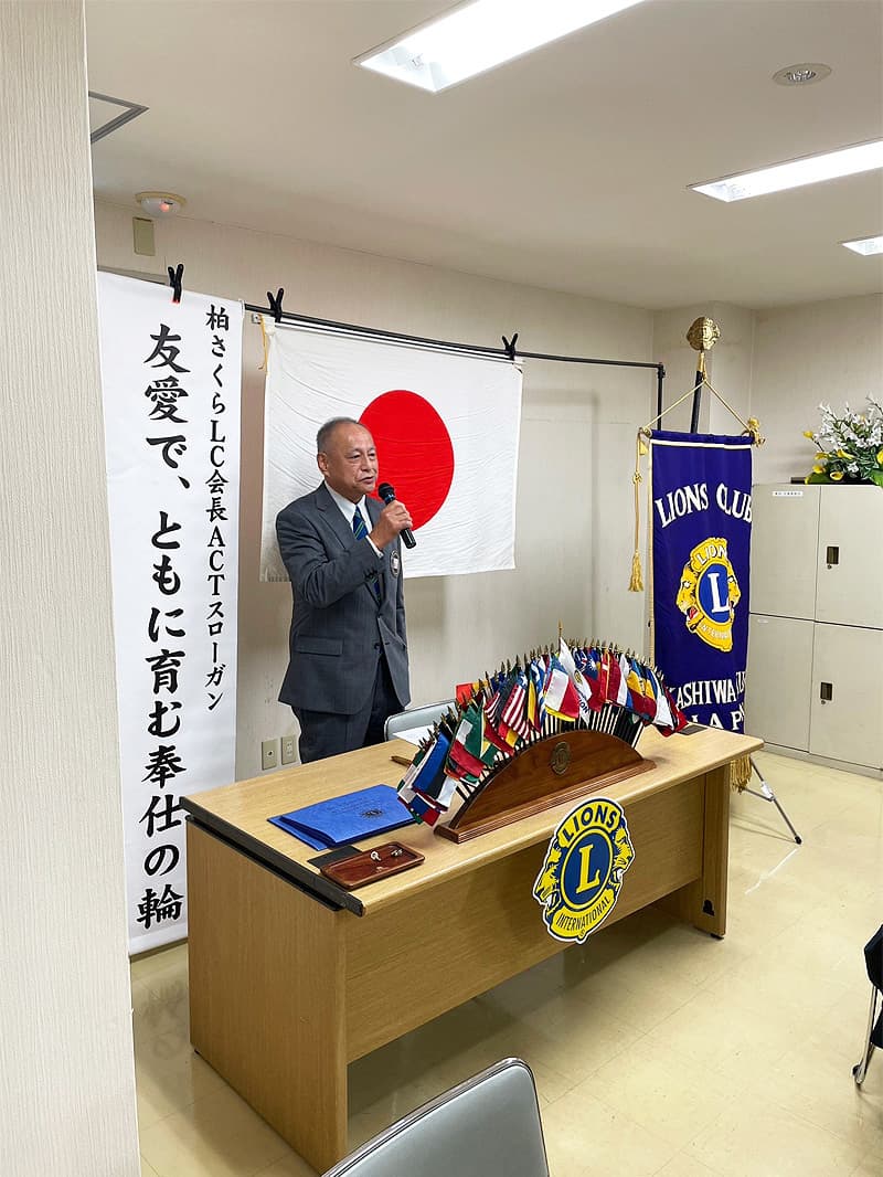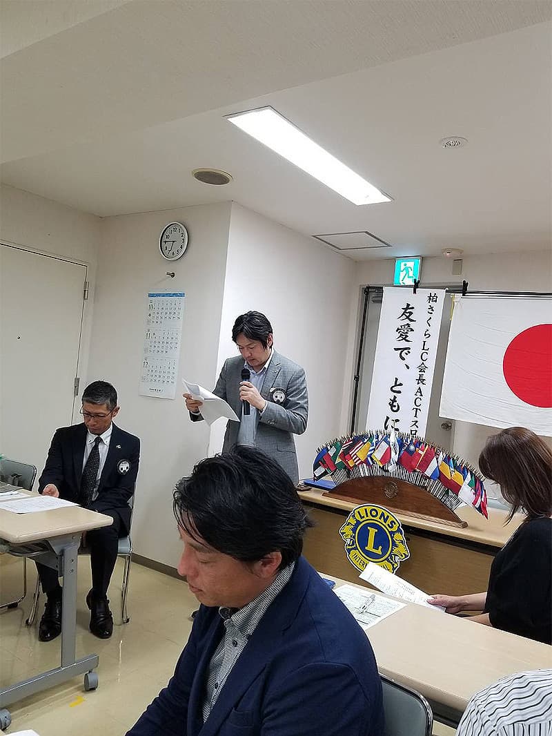 渡辺会長の開会宣言・開会ゴングの後、国歌君が代及びライオンズクラブの歌の斉唱とともに10月度第二例会を開催致しました。