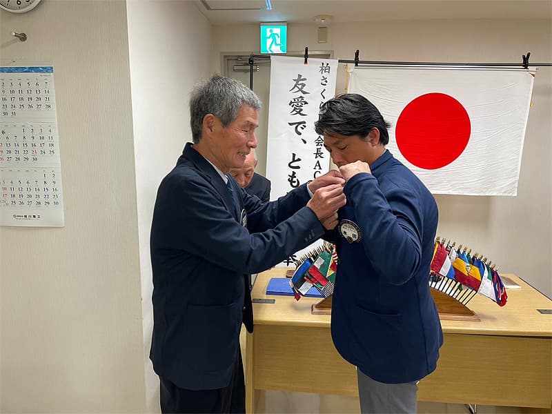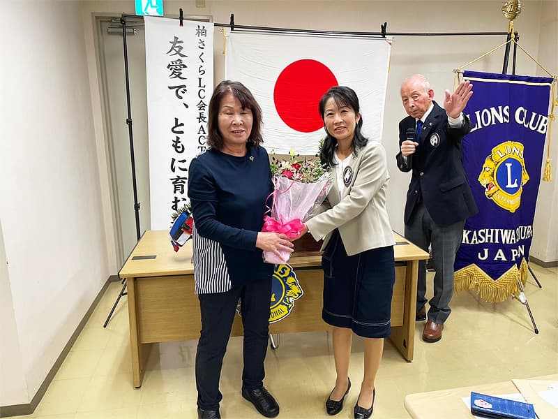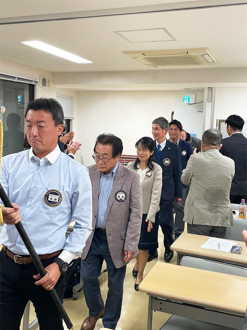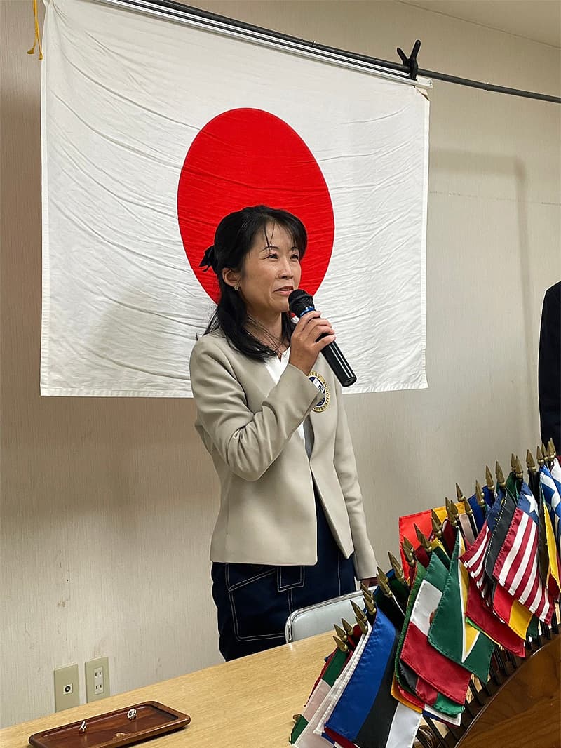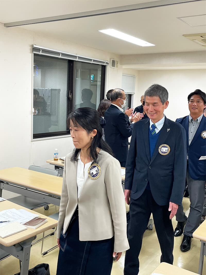 会長挨拶、地区名誉顧問・元地区ガバナー挨拶の後、入会者2名(福本 愛様、本田 雄大 様)の入会式が華やかに執りおこなわれました。