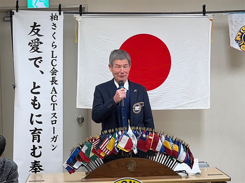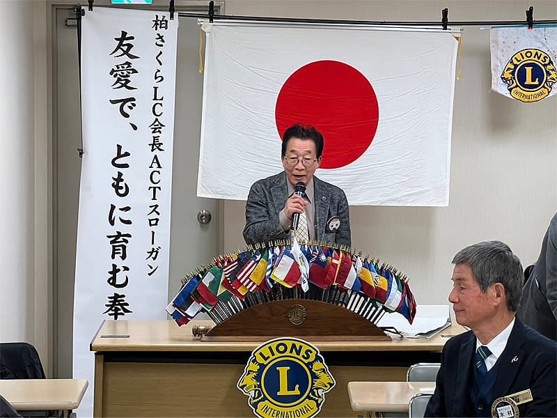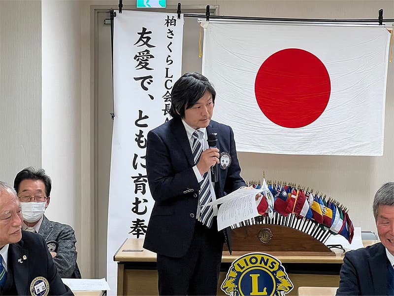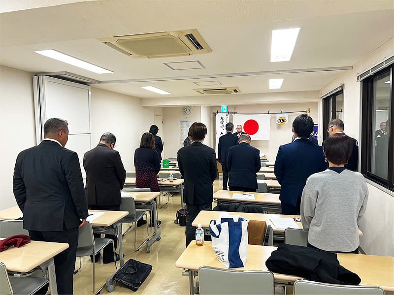 渡辺会長の開会宣言・開会ゴングの後、国歌君が代及びライオンズクラブの歌の斉唱とともに今年度最後の12月度第二例会を開催致しました。
