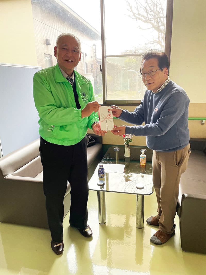 2024年 1月23日(火)支援金贈呈 2024年 1月23日(火) 支援金贈呈訪問。 少し陽射しが陰ってしまいましたが、渡辺会長・横尾委員長が、社会福祉法人美野里会様、社会福祉法人緑の会いずみ園様を訪問させていただきました。柏さくらライオンズクラブよりそれぞれ支援金を渡辺会長、横尾委員長より贈呈させていただきました。 (社会福祉法人美野里会様) (社会福祉法人緑の会いずみ園様)