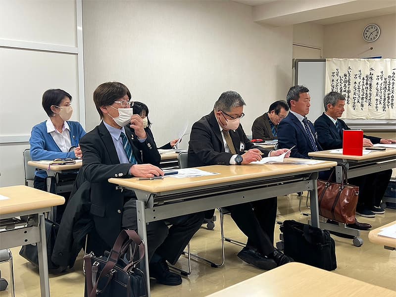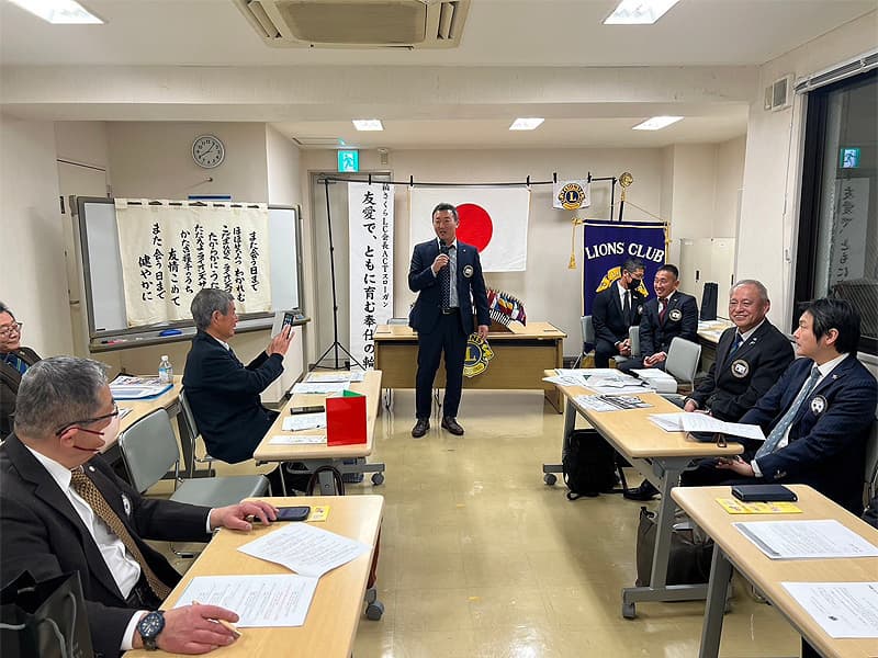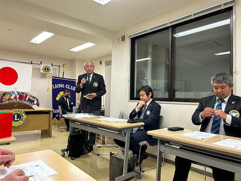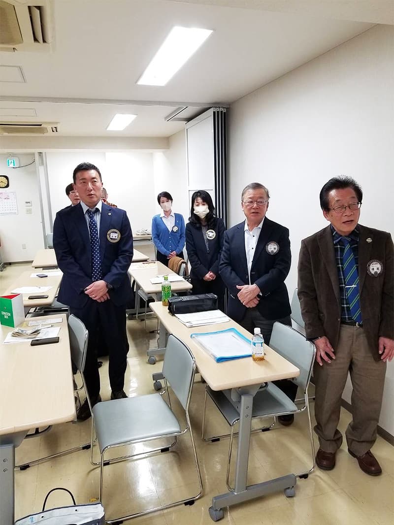 開会宣言・開会ゴングとともに3月度第一例会を開催致しました。今例会から机の配置を対面型に変更して、より活発的な例会となりました。第3回ガバナー諮問委員会において国際会長賞を受賞された木村顧問からは感謝の気持ちでいっぱいとのご挨拶がありました。3月・4月は様々な活動が多くスケジュールされていますので、例会毎に活動内容のお話や体験などの積極的な説明や発表がされてゆくと思われますので、今後の例会はさらに皆様のパワーアップした姿やお話を共有出来そうです。第二例会は次期会長からスローガンの発表があります。どの様なスローガンが発表されるか楽しみです。