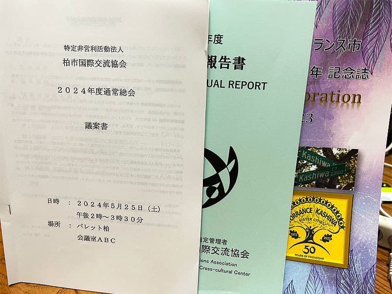 柏市国際交流協会の通常総会に出席させていただきました。第1号議案2023年度活動報告、第2号議案2023年度決算報告・監査報告、第3号議案2024年度活動計画案、第4号議案2024年度予算案、第5号議案役員1名選任の件全てにおいて慎重審議がなされ、全ての議案について可決承認されました。