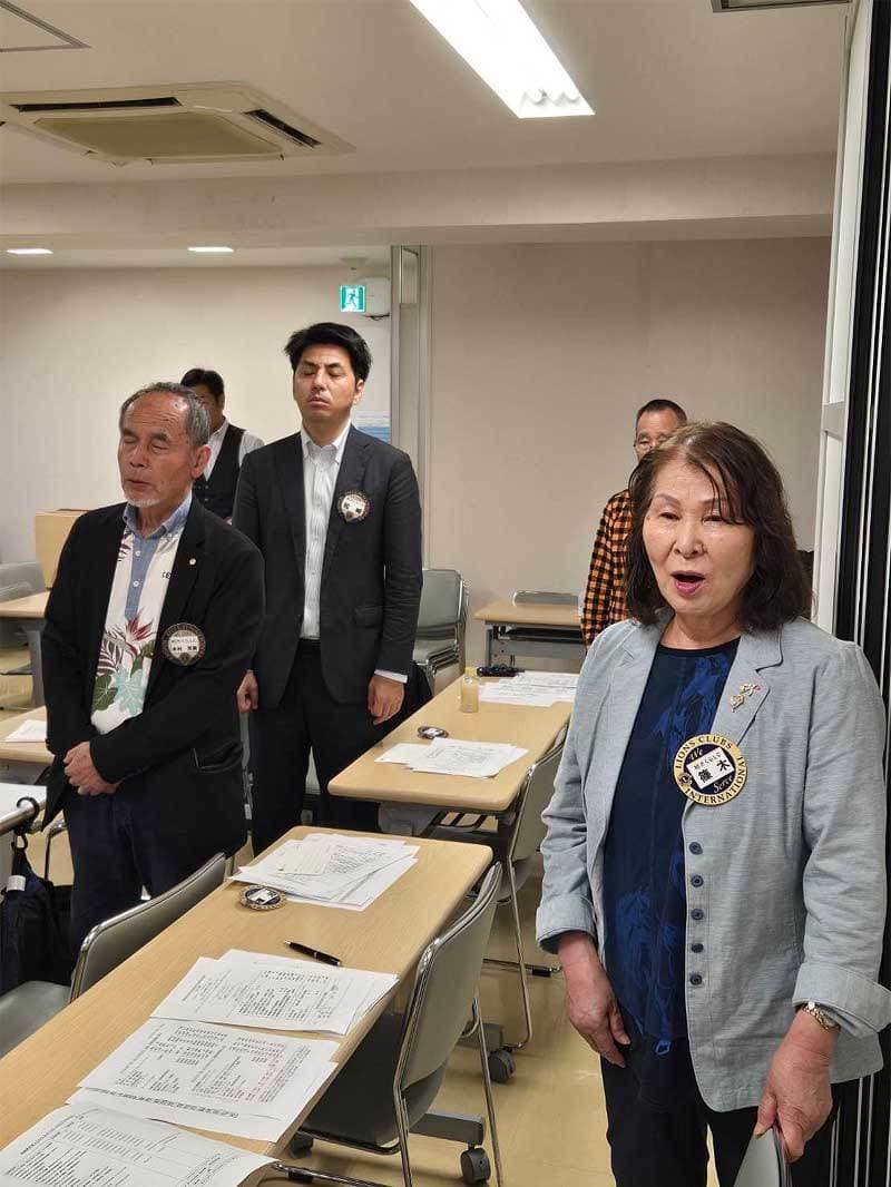 渡辺会長の開始ゴングから、いよいよ今季最終月6月度の第一例会が開催されました。今期の様々な活動を通しての報告や反省等の報告があり、次年度体制への大きな期待を示す例会になりました。次年度会長スローガン「仲間は宝 ともに笑顔を育もう」が示され、いよいよ新体制への移行が始まりました。新年度体制による新組織体制や予算案の報告もあり、いよいよファイナル例会から新年度体制へのスムーズな移行を確認致しました。