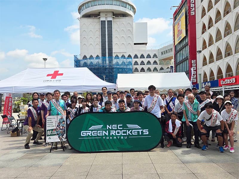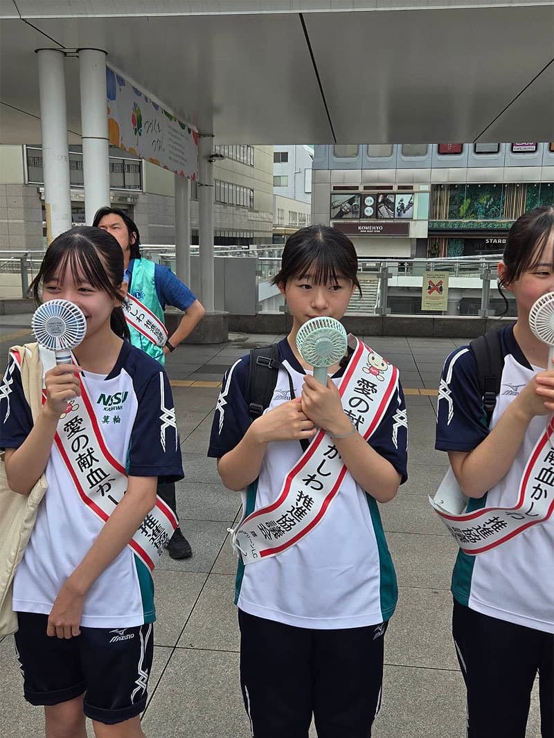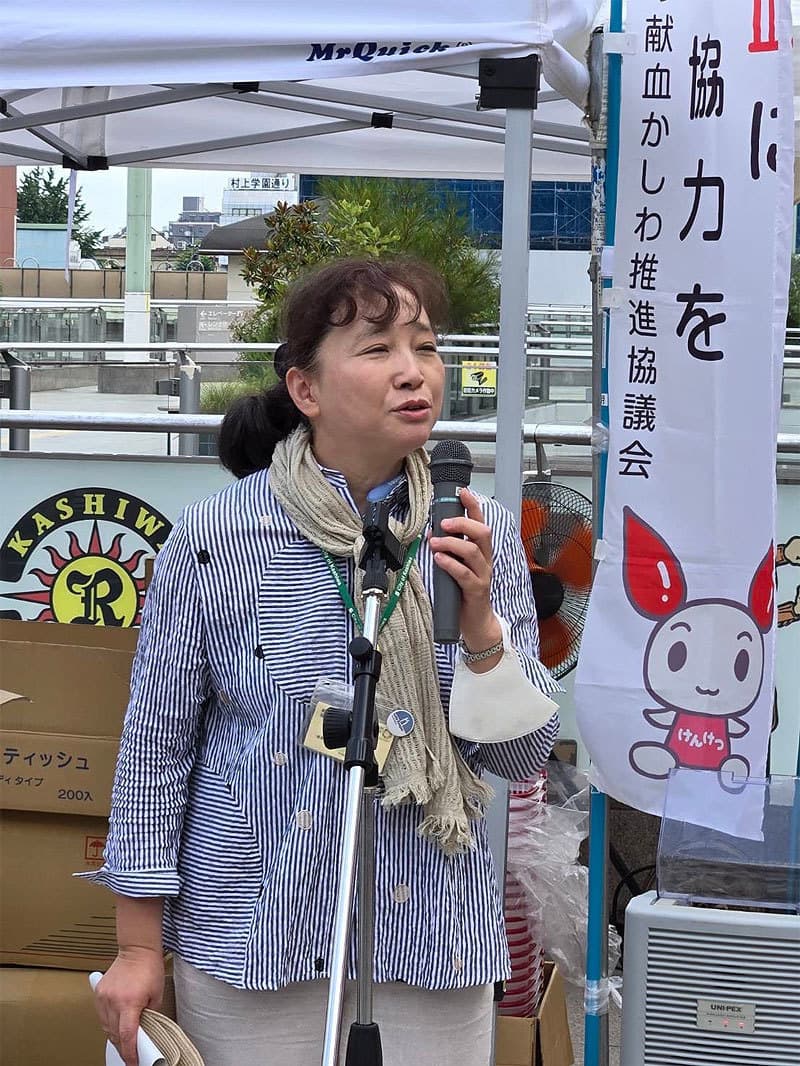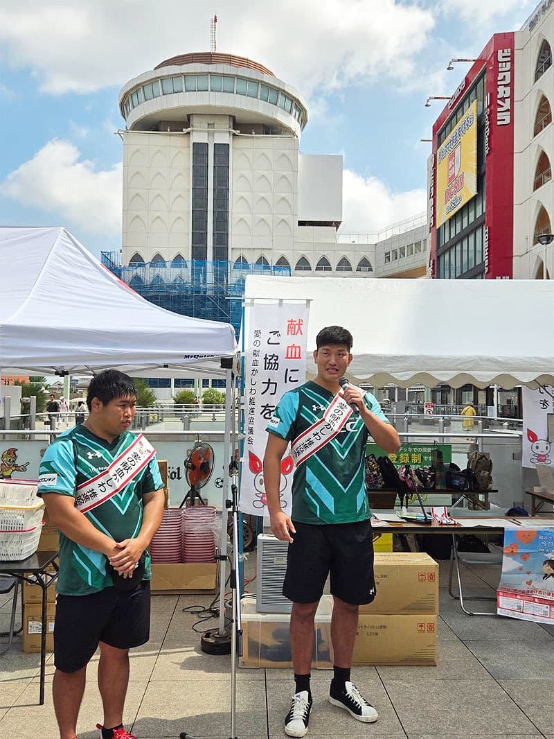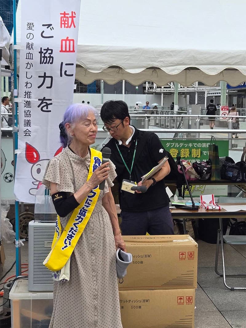 愛の献血かしわ推進協議会主催の合同献血キャンペーンのお手伝いに当クラブも参加してまいりました。真夏日の猛暑の中でのキャンペーン活動ではございましたが、多くの方々に献血の大切さ重要さをアピールをさせていただきました。NECグリーンロケッツのラグビー選手にもお越し頂き、明るい笑顔の元でキャンペーン活動が開催されました。2027年度に人工血小板が実用化され、あらゆる止血に役立ち災害時や有事、事故時に救急車等に保持できるようになり助かる命が増えて行く事が早期に実現出来ることを期待しています。