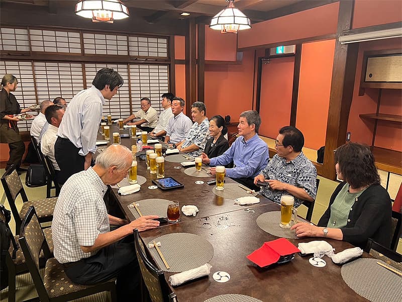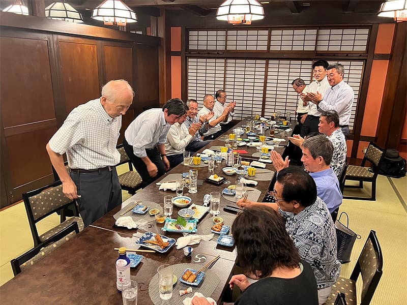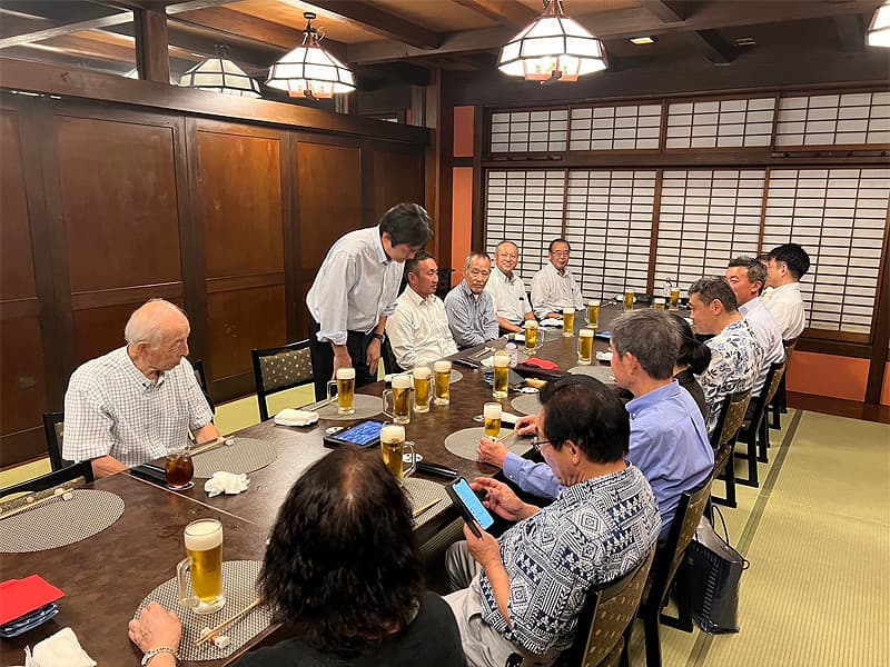 橋本会長の開始ゴングから、いよいよ2024年度期8月度第一例会が開催されました。橋本会長から新たなアクティビティとして開催した酒井根町会夏まつりへの出店における成果報告があり、今後も新しい時代のニーズに伴い、クラブ会員のコミュニティーが強くなり繋がり強化に向けたアクティビティを考えて行きたいとの報告がございました。8月に入り連日の猛暑による体調管理に注意しながら当クラブにおける様々な事業による連帯感を強め、クラブ会員間のコミュニティーや連携の広がりにも期待をして今後の活動に取り組んで行きたいと思いました。例会後は新入会のお二人の歓迎会を近くの居酒屋にて開催。大いに盛り上がり、当クラブ会員間の親睦につながりました。賑やかで楽しい歓迎会となり、奉仕活動の在り方やコミュニティー活動への取組方などへの積極的な会話にも花が咲き、今期のクラブ体制による時代の流れをより良い形で積極的に取り入れてゆく事が強く感じられました。