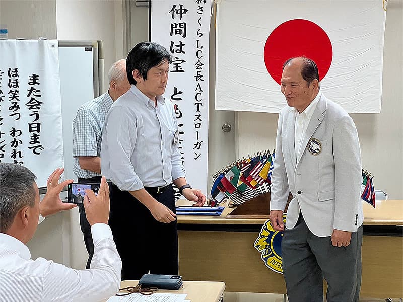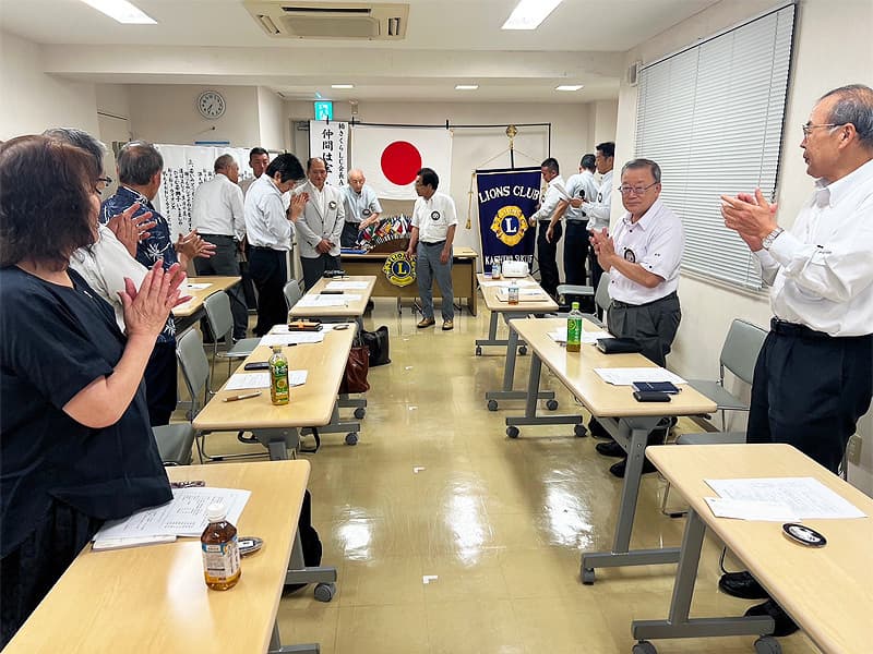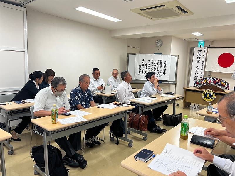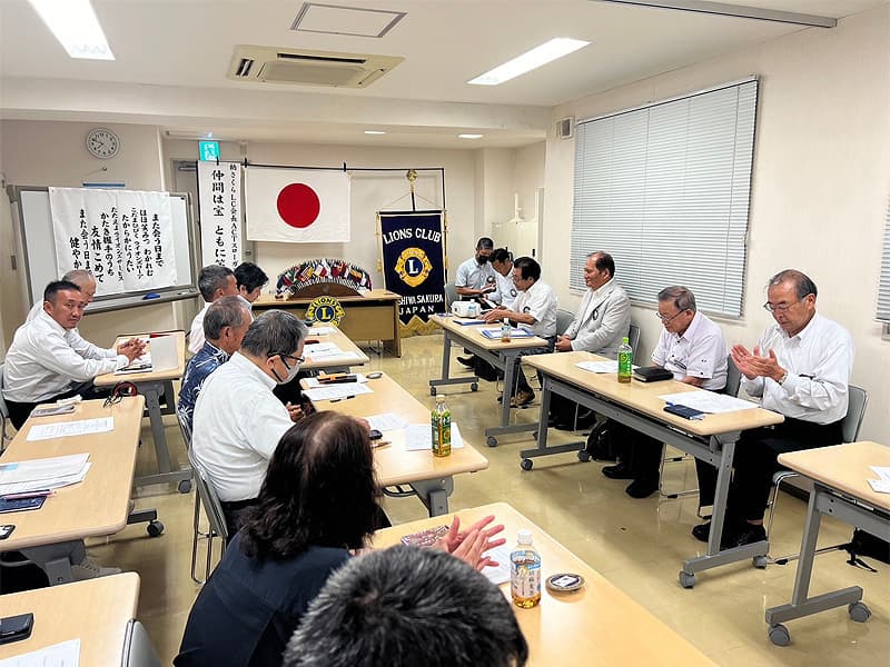橋本会長の開始ゴングから、8月度第二例会が開催されました。9月以降に予定されている多くの活動に関する詳細説明があり、活動に対するクラブ会員の協力体制の確認も行われました。9月9日月曜日には当クラブ主催のチャリティーゴルフ大会が藤ヶ谷カントリー倶楽部にて行います。まずは開催成功に向けてクラブ会員全体で盛り上げて行けるように準備を進めています。また、新たに程田 光晴(ほどた みつはる)様が入会され、入会式を開催させていただきました。新しいメンバーも増え今後のアクティビティーの充実を計ってまいりたいと思います。
