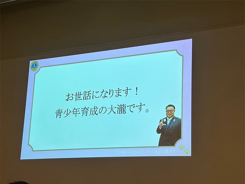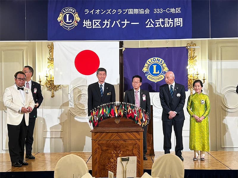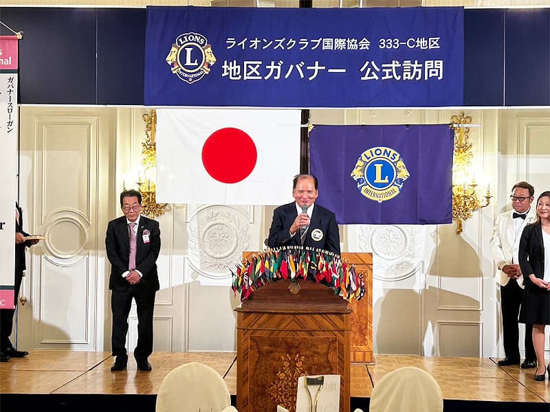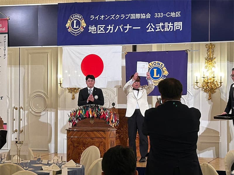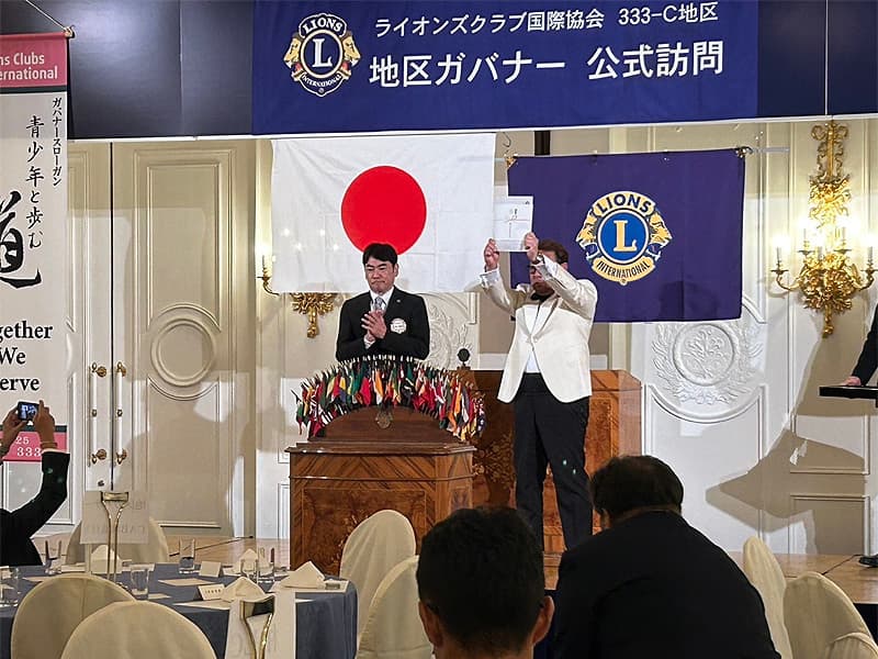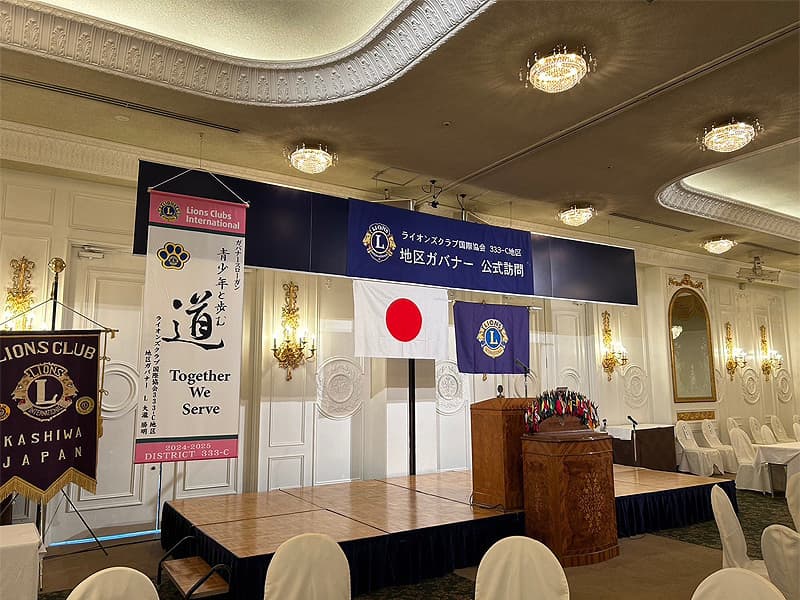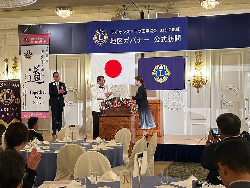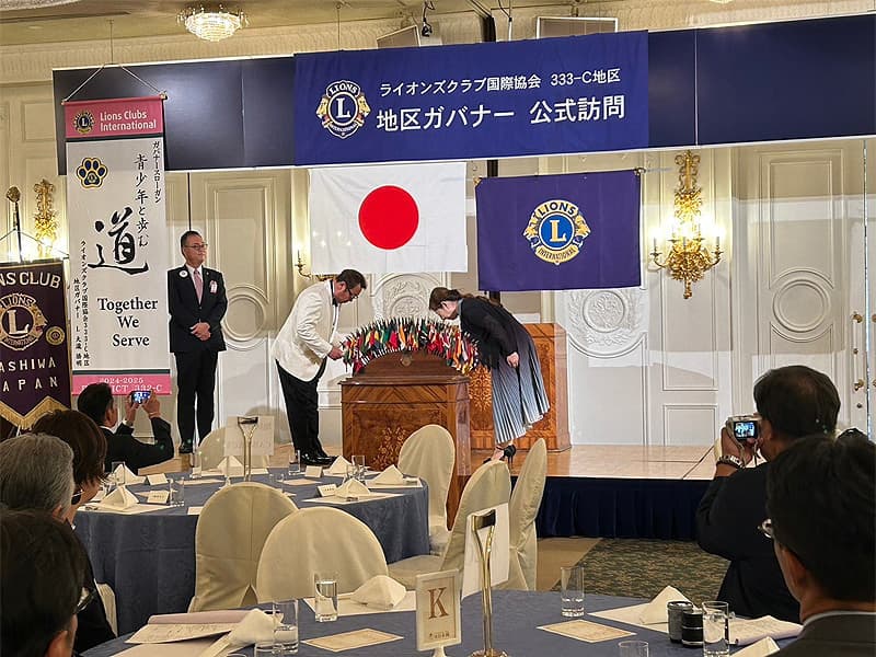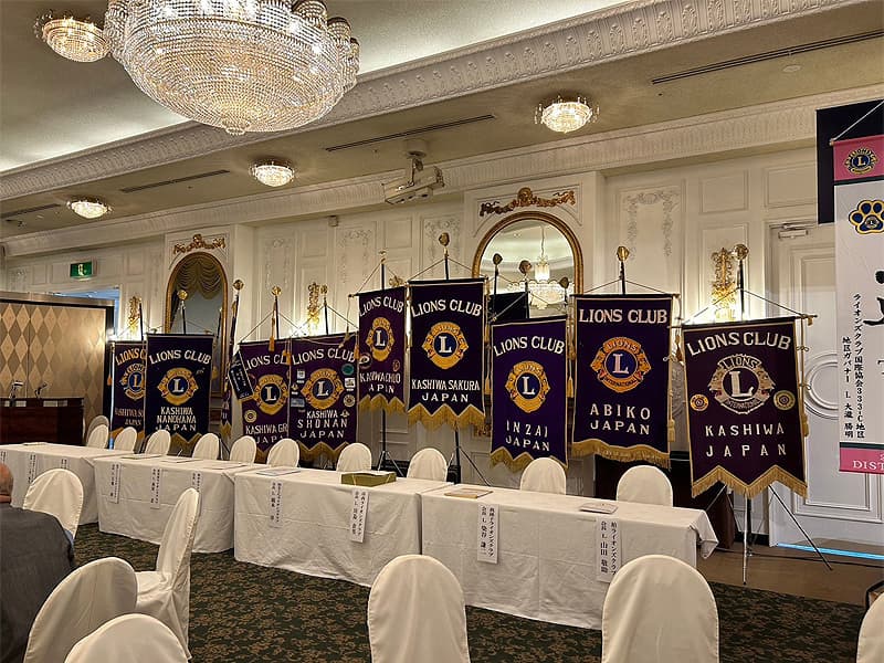 地区ガバナーを公式にお迎えしての合同例会がロイヤルガーデンパレス柏 日本閣にて盛大に開催されました。地区ガバナー・地区役員・ご来賓のご紹介から始まり、柏ライオンズクラブ、我孫子ライオンズクラブ、印西ライオンズクラブ、柏さくらライオンズクラブ、柏中央ライオンズクラブ、柏沼南ライオンズクラブ、柏グリーンライオンズクラブ、柏オークライオンズクラブ、柏なの花ライオンズクラブ、柏創生ライオンズクラブの会長ならびにクラブ紹介が行われ、地区ガバナーより地区運営方針の説明がありました。