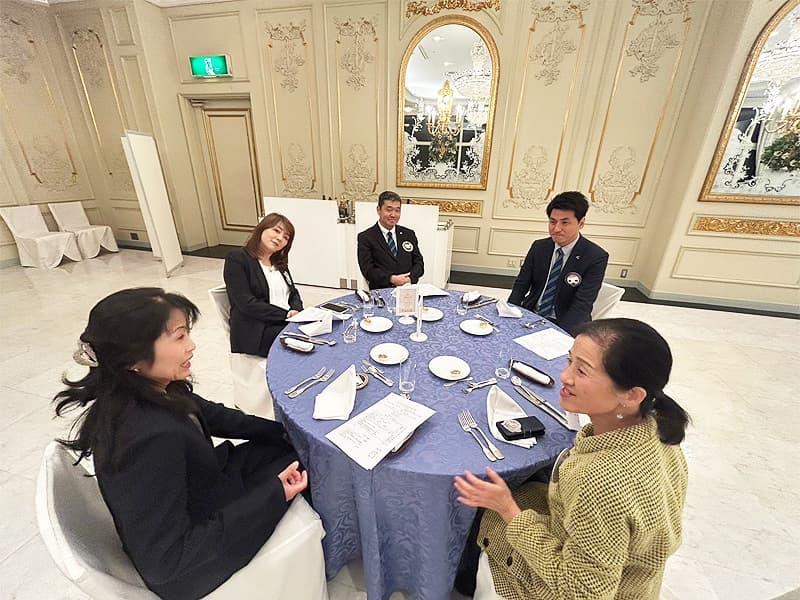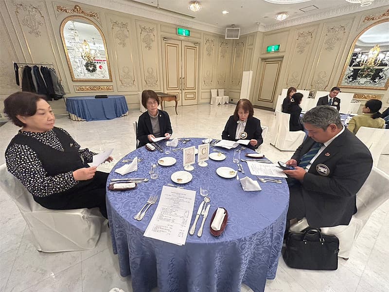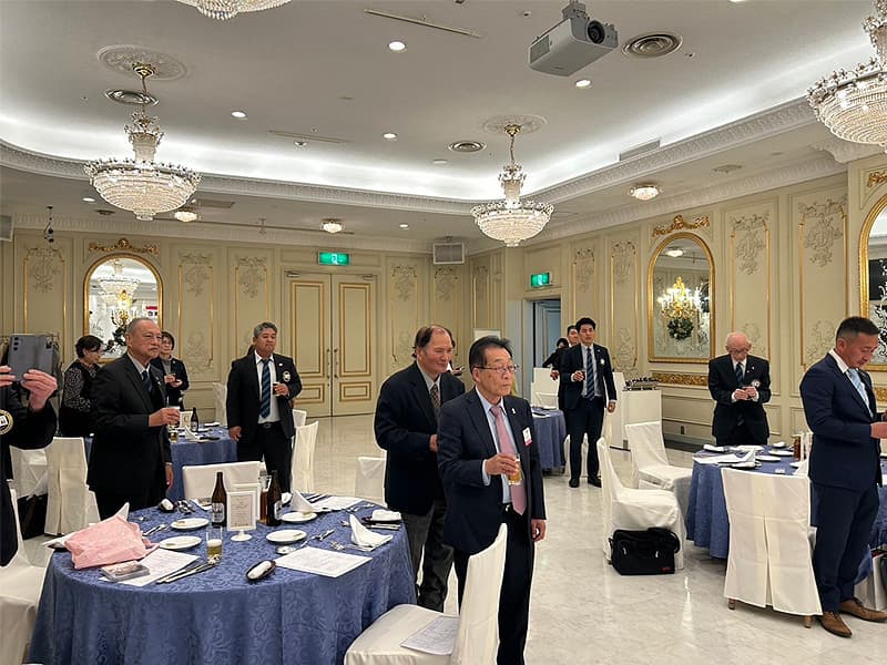 橋本会長の挨拶から、11月度第二例会として横尾ゾーンチェアパーソンにご訪問いただき、訪問例会として場所をロイヤルガーデンパレスを会場として開催致しました。横尾ゾーンチェアパーソンからは各クラブにおける例会も様々な形があり、良い所はどんどん取り入れていきながら社会貢献やアクティビティを継続してほしいとのご進言や新たな仲間を募って行こうとのお話を頂戴致しました。また、今例会において程田Lの入会歓迎会も開催させていただきました。様々な新たな交流と情報の共有が交わされた大盛況の例会となりました。
