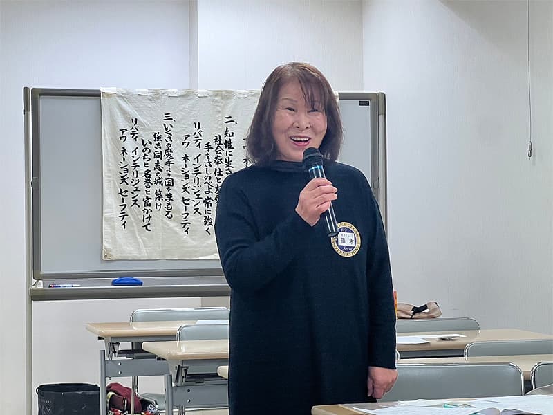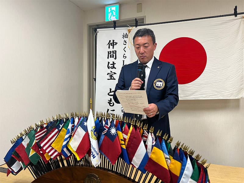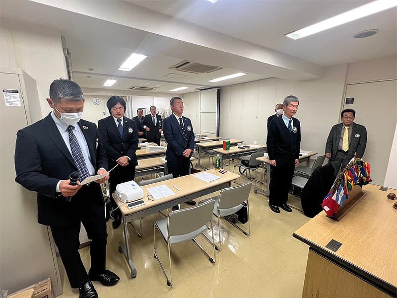橋本会長の開始ゴングから、12月度第一例会が開催されました。時の経過は早いもので、2024年もいよいよカウントダウンが出来る時節を迎えました。今年は元旦から能登半島地震、日航機事故、猛暑の夏、豪雨による洪水被害などの自然災害に加え、物価高騰や政治不安などもあり、日々平穏に生きる大切さを思い知らされる一年になりました。しっかりと基本精神を保ち社会貢献、奉仕活動を始め、様々な事に目を張り情報を収集しながら、当クラブが行うべきアクティビティを作ってゆきたいと思います。年内における奉仕活動・貢献活動にしっかりと取り組んでまいります。