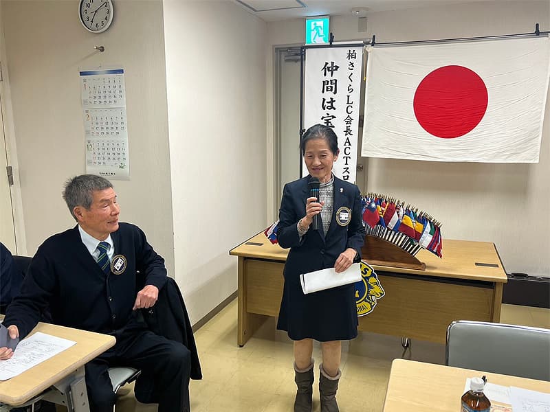 橋本会長の開始ゴングから、12月度第二例会が開催されました。時の経過は早いもので、2024年もいよいよ最終例会になりました。寒さが増し、インフルエンザの猛威が続いている中ですので、まずは皆様の健康第一を考えるようにしたいと思います。年内における奉仕活動・貢献活動にしっかりと取り組んでまいります。
