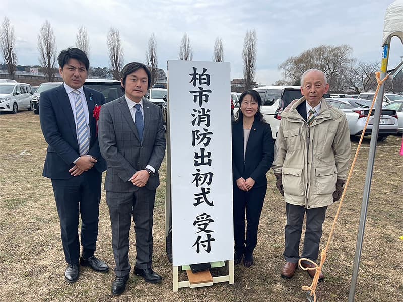 柏市消防出初式は今回で69回目の開催となる伝統行事で、消防隊による分列行進、消防団による小隊訓練や一斉放水が披露されました。