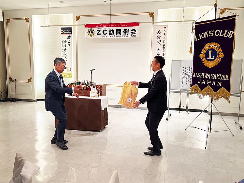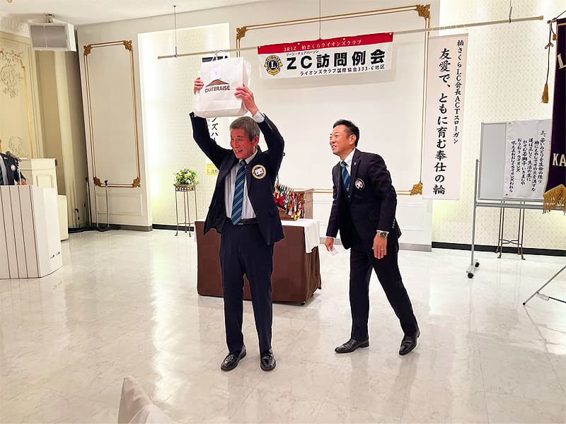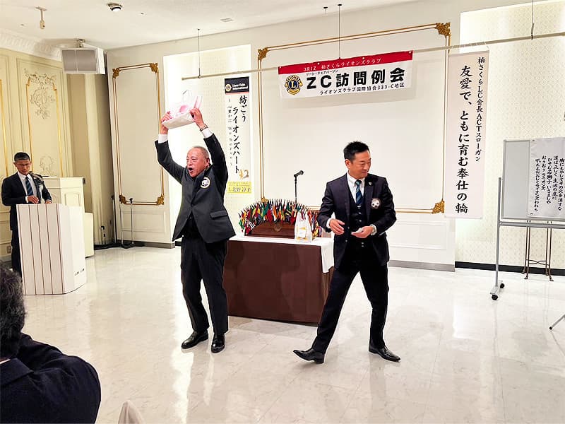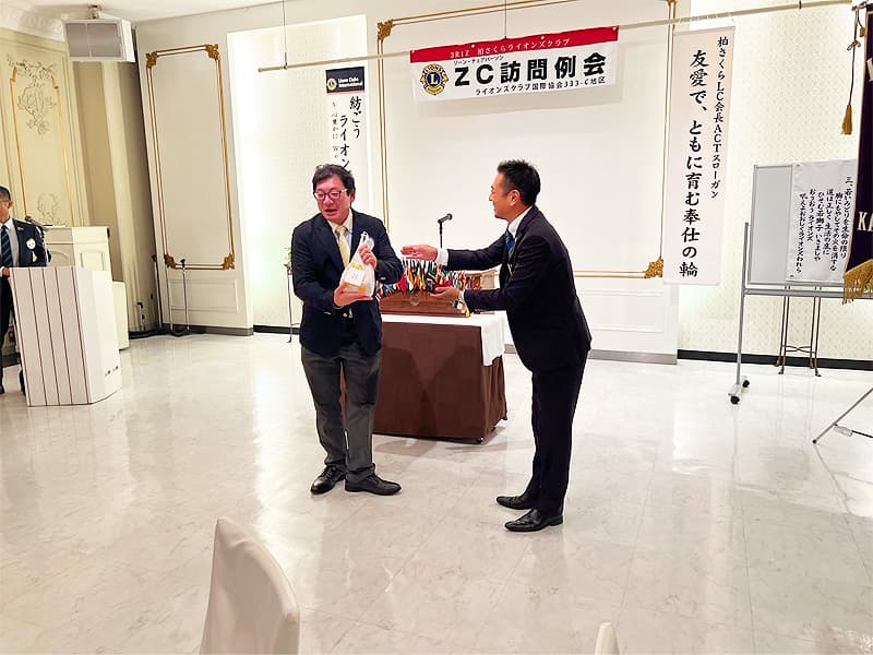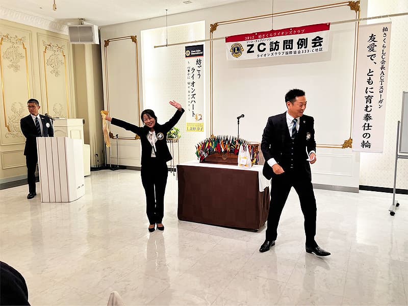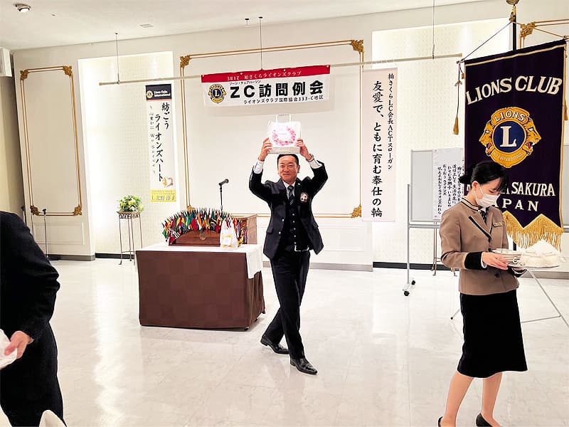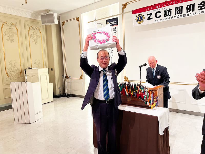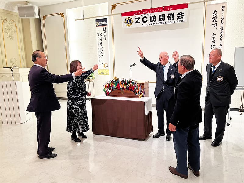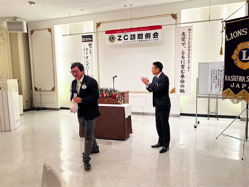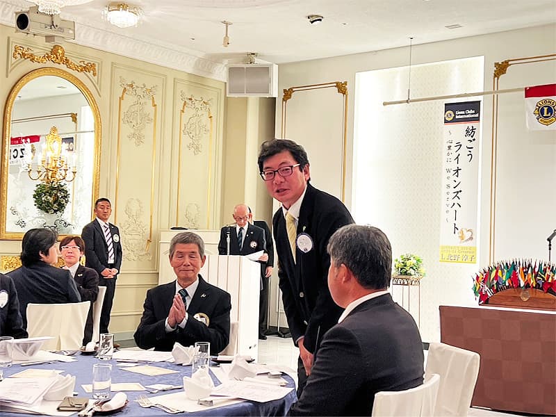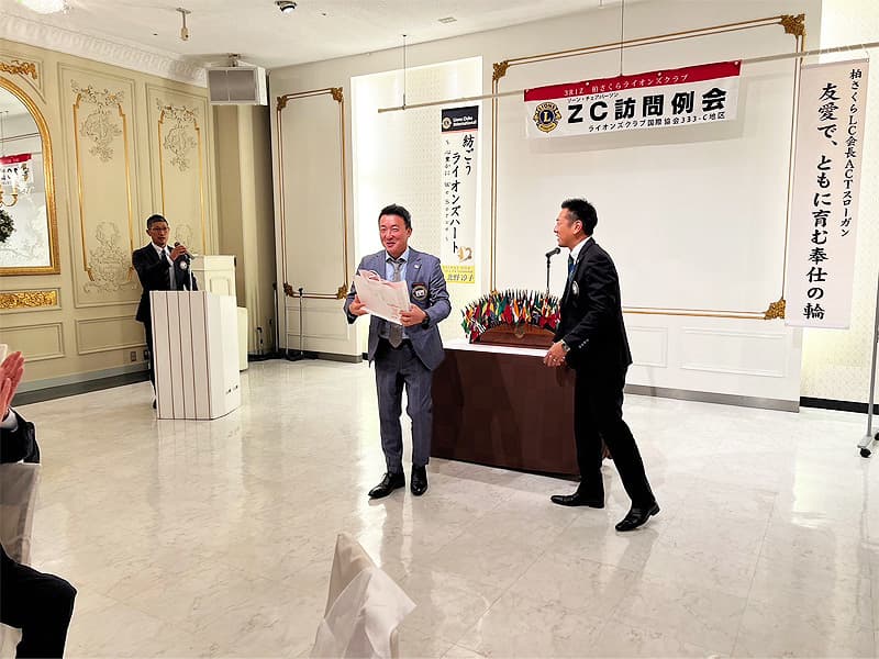 3R-1Z ホストゾーン・チェアパーソン足立 剛様、地区GETコーディネーター栗原 周一郎様、我孫子ライオンズクラブ 第51代 会長 井上 瞬様、我孫子ライオンズクラブ 第一副会長 染谷 謙二様、我孫子ライオンズクラブ 出席会員会則委員会 松下 勤様をお迎えしてロイヤルガーデンパレス柏 日本閣において11月度第二移動例会を開催致しました。