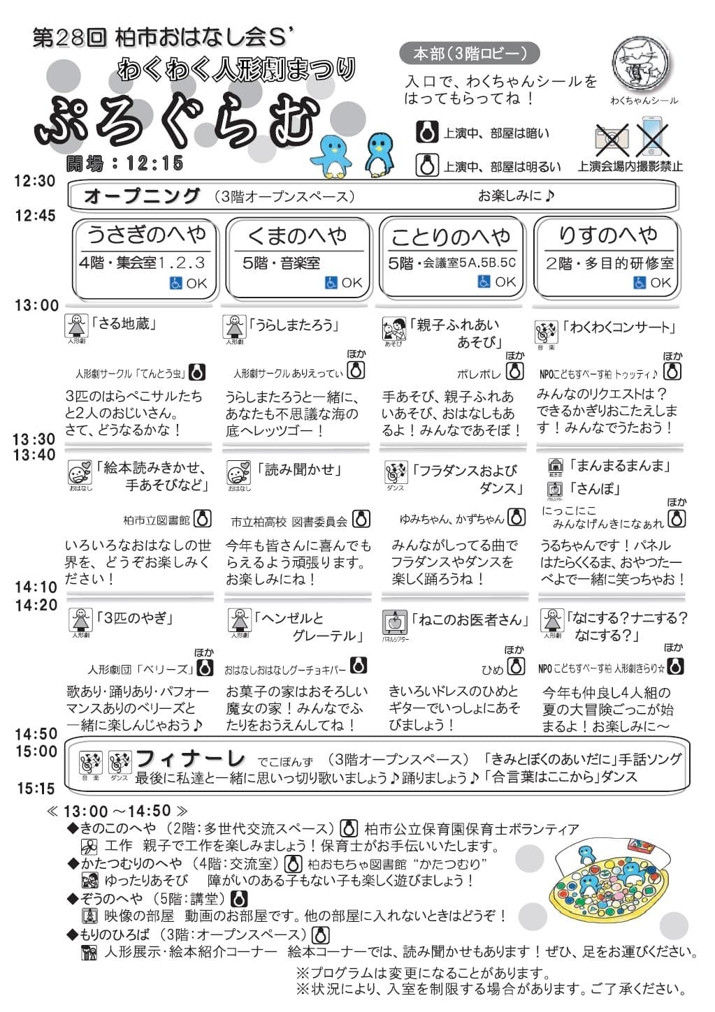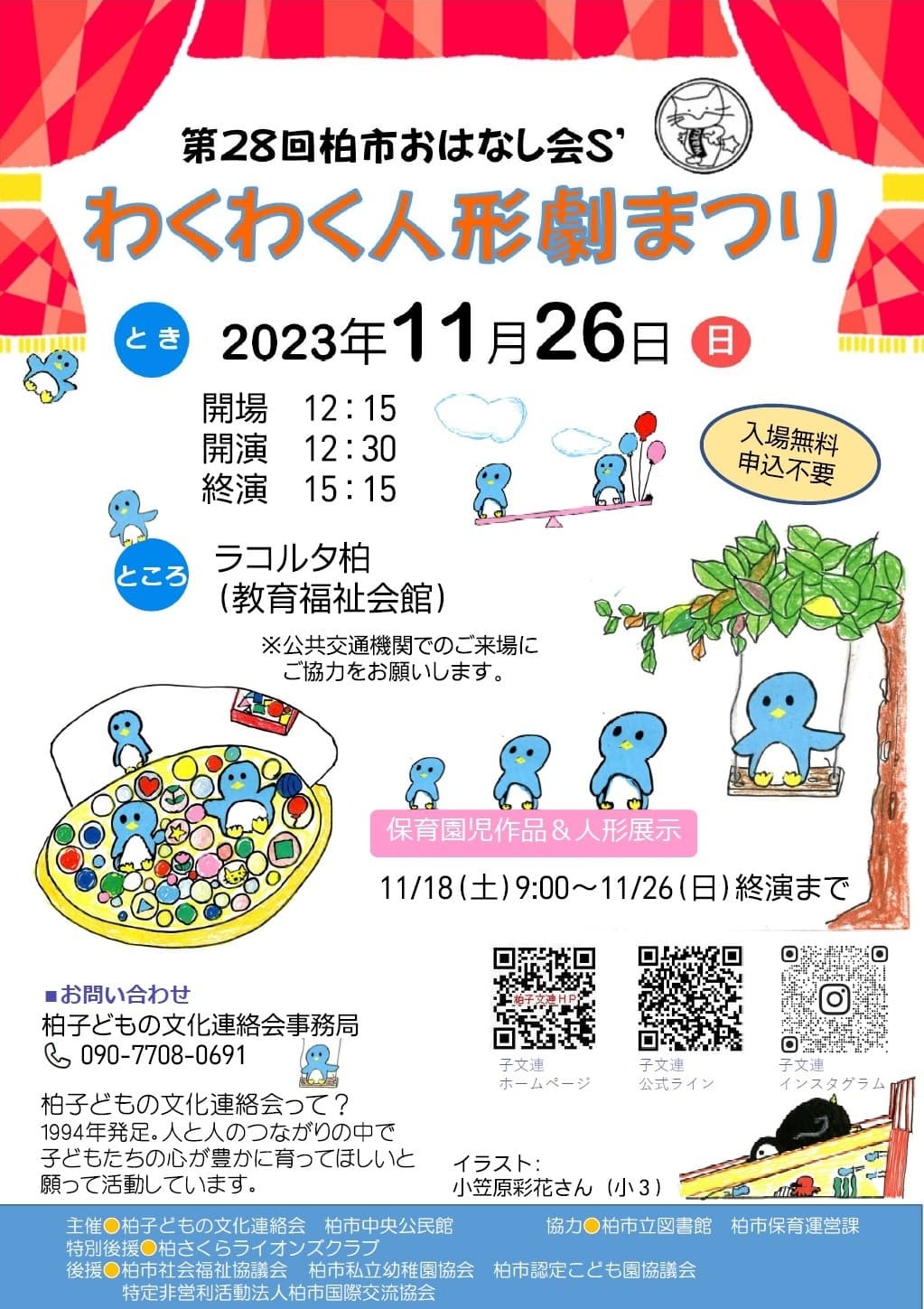 柏子どもの文化連絡会主催の第28回わくわく人形劇まつりがラコルタ柏にて開催されました。子どもたちが心豊かに成長することを願って、毎年1回ラコルタ柏(柏市中央公民館)で開催されています。